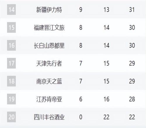 14-20分别是新疆、福建、吉林、天津、同曦、江苏和四川。新疆这轮击败四川,不过窗口期对他们非常重要,看看格兰能不能建立好的攻守体系。福建、吉林、天津、同曦、江苏这轮全部都输球了,特别是吉林已经三连败,估计福建和吉林的战绩会持续下跌。至于同曦,这轮郭昊文没有打,导致他们溃败上海。天津和江苏最近的趋势不错,但分别输给了辽宁和深圳,但后续依然有希望成为搅局者。四川22连败,气势越来越低了。